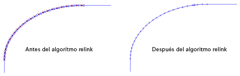 En Almacam 2.2 y en la versión actual de Nest&Cut, hemos realizado una actualización del algoritmo de relink por lo que ahora se pueden conectar hasta los elementos más pequeños: hasta un tamaño de 1E-5 mm. Esta actualización permite, en la importación, tratar los archivos DXF más problemáticos. La ventaja de este algoritmo es de ser capaz de reproducir las decisiones de corrección que serían tomadas por un humano experto, al mismo tiempo que sigue ejecutándose instantáneamente.