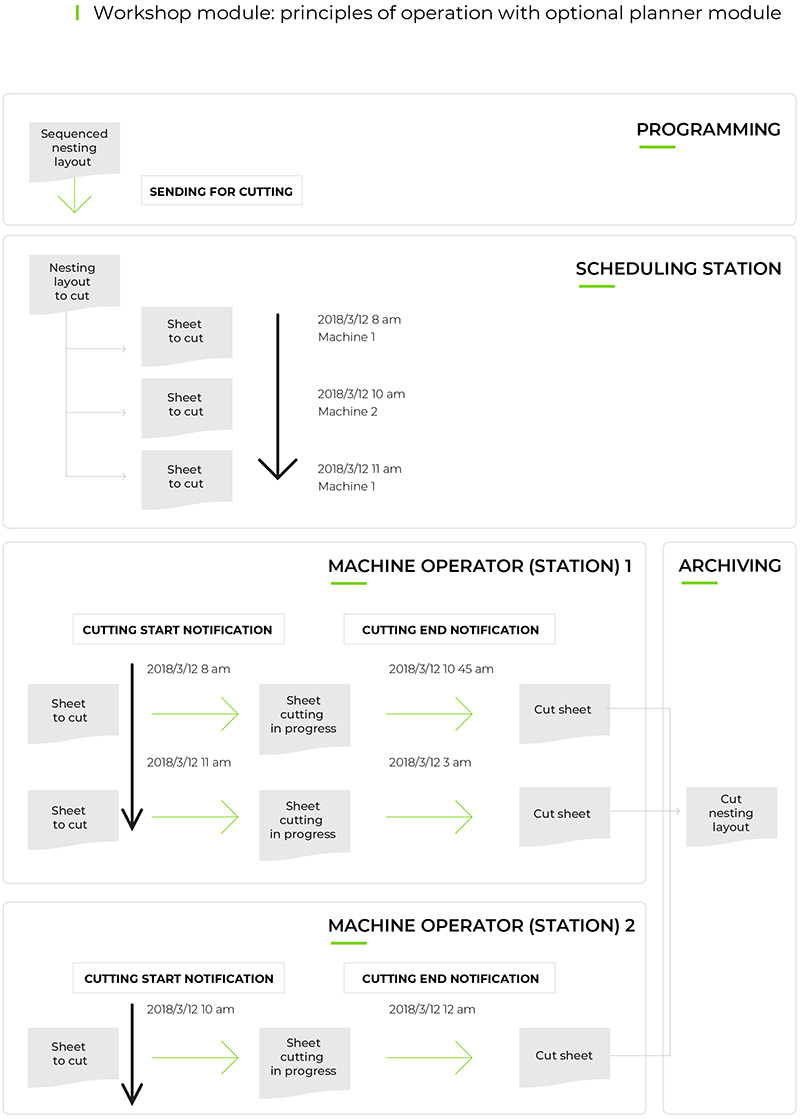 A utilização do WorkshopSeat assegura uma total rastreabilidade das peças produzidas. A carga de trabalho do conjunto das máquinas de corte de um local de produção é visualizada e planejada em um calendário. Isto permite ajustar da melhor maneira a utilização do parque de máquinas e otimizar a produção.