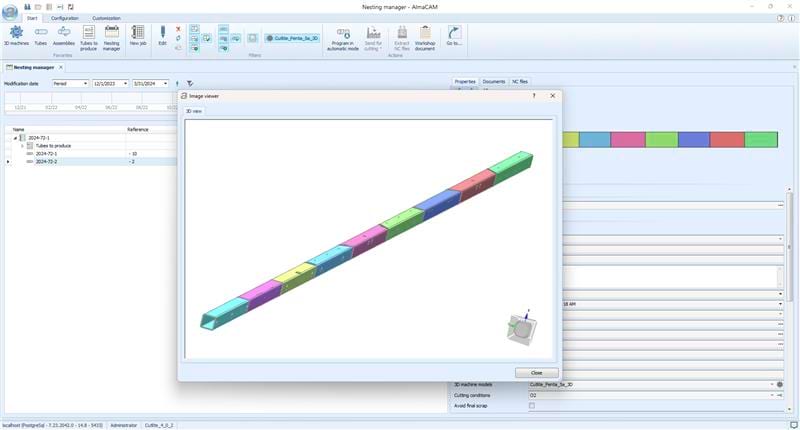 Almacam Tube affronta queste sfide automatizzando il processo di taglio, ottimizzando l’uso del materiale con algoritmi avanzati di nesting e permettendo di lavorare precisamente anche geometrie complesse.