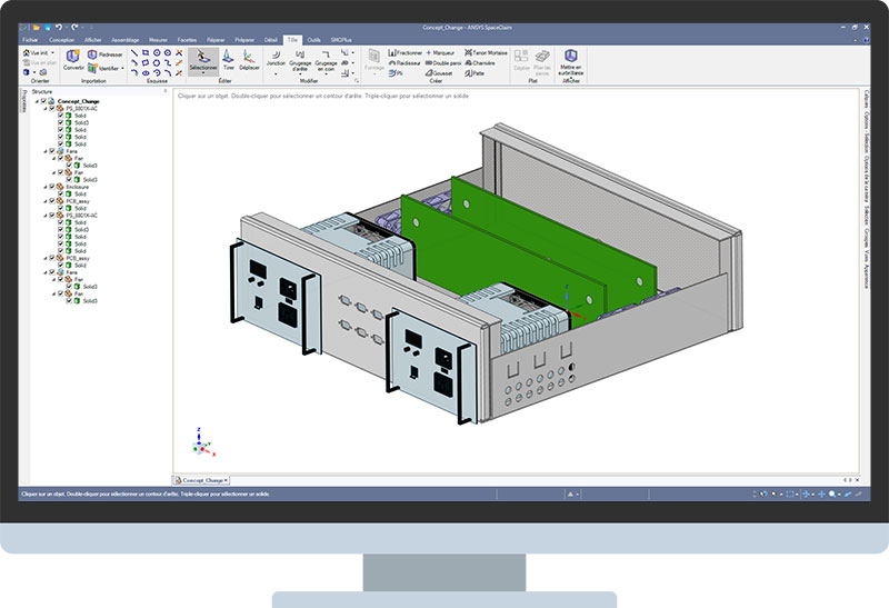 SpaceClaimSMOPlus, an open and communicating CAD solution providing a top-down design approach, the most accurate and complete unfolding functions, and a true 2D/3D bidirectional associativity.