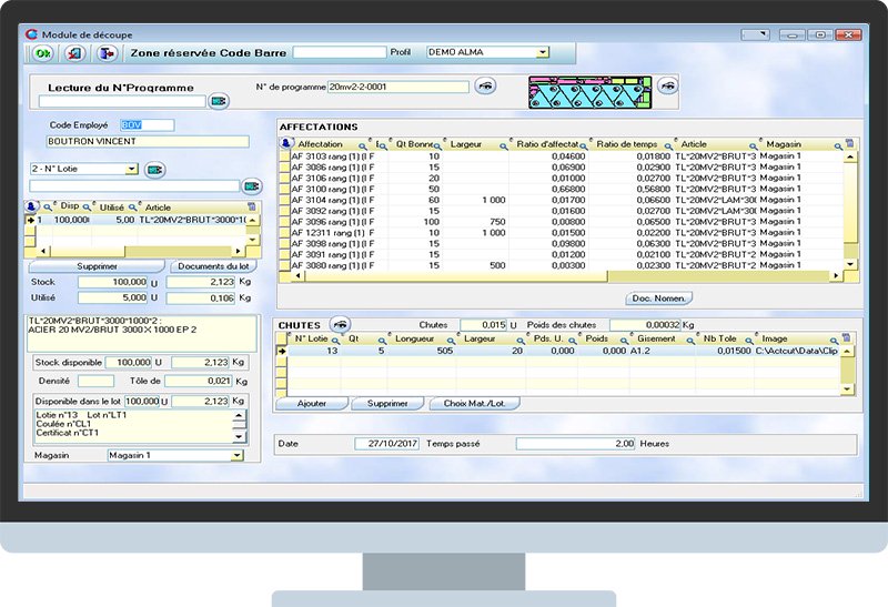 Grâce à la solution de GPAO Clipper-Découpe et son intégration à la FAO Almacam, le partage de données entre le devis, la prise de commande, la gestion des stocks, les lancements en fabrication et le suivi de production entrainent un gain de temps et de fiabilité dans la transmission de l’information, une diminution du taux de chute matière et une maitrise de la traçabilité qui se traduit, in fine, par un gain de productivité.