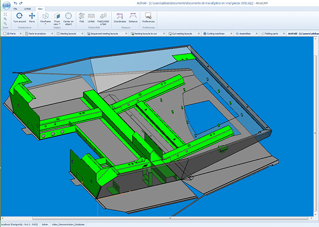 In this process, Almacam is deployed not only to nest and cut parts from sheets, but also to optimize cutting of the sections. As a result we have developed various section nesting algorithms to maximize use of the raw material bars, while meeting the requirements imposed by the machines that we manage (saws or robots).