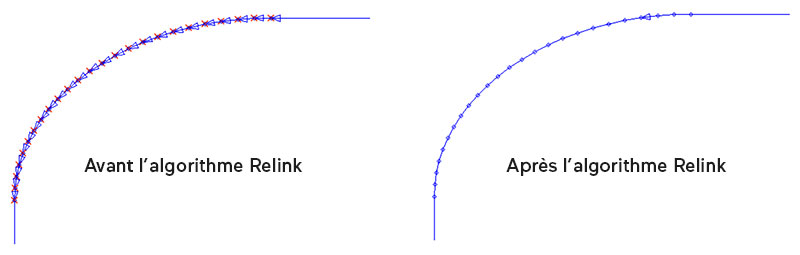Dans Almacam 2.2 et la version actuelle de Nest&Cut, nous avons réalisé une mise à jour de l’algorithme de reliage qui le rend capable de relier même les éléments les plus petits : jusqu’à une taille de 1E-5 mm. Cette mise à jour permet à l’import de traiter les DXF les plus problématiques. La force de cet algorithme est d’être capable de reproduire les décisions de correction qui seraient prises par un humain expert, tout en s’exécutant instantanément.