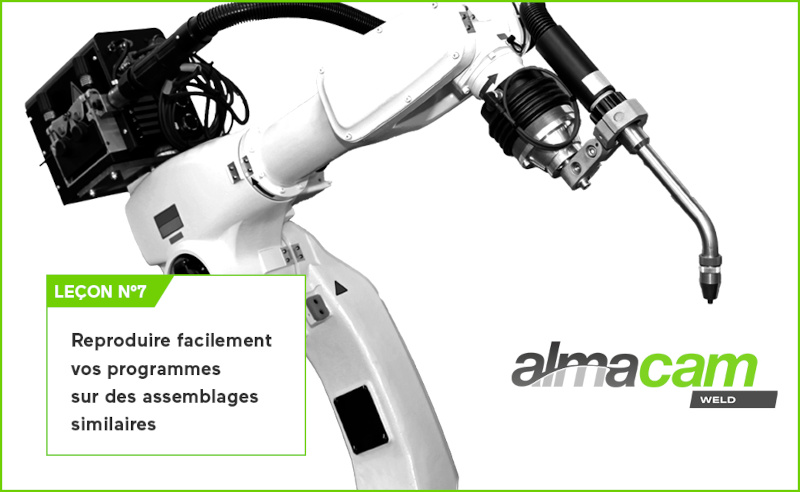 Almacam Weld propose des fonctionnalités avancées de duplication, symétrie et clonage, permettant d’adapter rapidement un programme existant à des pièces de géométrie comparable. Cette capacité d’adaptation accélère la programmation hors-ligne des robots de soudage, en particulier pour les gammes de produits modulaires ou les petites séries, où la flexibilité est un atout stratégique.