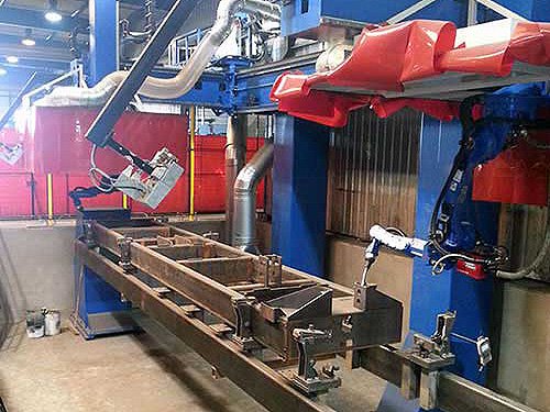 A Thiévin integrou a robótica há aproximadamente 15 anos. A empresa está hoje equipada com três células de solda robotizada Yaskawa (Motoman). A mais recente, que acaba de ser colocada em serviço, é uma das raras deste tipo na França. Ela compreende dois robôs montados em um pórtico de 26 m e capazes de intervir em duas estações. Os dois robôs trabalham na mesma peça com sequências e instruções sincronizadas. Os robôs possuem cada um três eixos externos X, Y, Z (os três eixos de translação do pórtico: transversal, longitudinal, vertical) e dois posicionadores de um eixo de rotação cada um, ou seja 4 eixos externos por robô. Esta instalação extremamente elaborada se destina a soldar peças de grandes dimensões ou muito volumosas que até agora eram soldadas manualmente. O objetivo consiste em diminuir ao máximo os tempos de fabricação: os dois robôs soldam simultaneamente e quando trabalham em uma das estações, uma peça pode ser carregada ou descarregada na segunda estação.